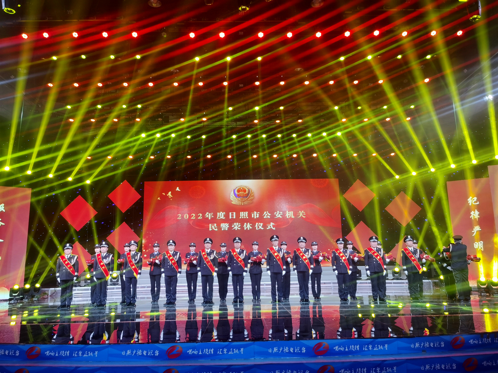 當天19:00,在日照廣播電視臺演播大廳,隆重舉辦了報告演出。日照市副市長、公安局局長李剛致辭。會上隆重舉行了2022年度警銜晉升儀式、2022年度民警榮休儀式、表彰了“人民滿意的派出所”等先進集體,中間通過精彩的節(jié)目,生動地將反詐騙、刑偵偵察、維護交通秩序等呈現(xiàn)在舞臺上,展現(xiàn)了日照公安為人民的良好作風,同時也讓廣大市民了解各種法律法規(guī)知識,并起到了很大的反響,并紛紛表示在生活、工作中,一定會根據(jù)匯報內(nèi)容,做好宣傳工作,普及法律法規(guī)知識。